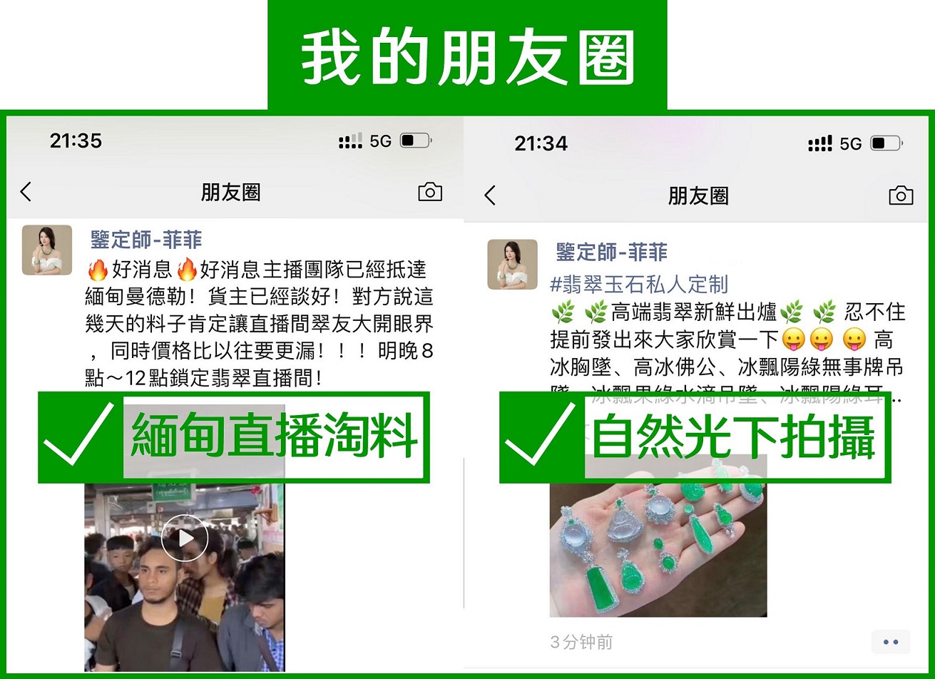 朋友圈很多微商都是市場上拍照轉發圖片,實際上手裡貨都沒有,也沒見到貨,這樣多次轉手翡翠不好價格還很貴,那要如何識別他們呢?